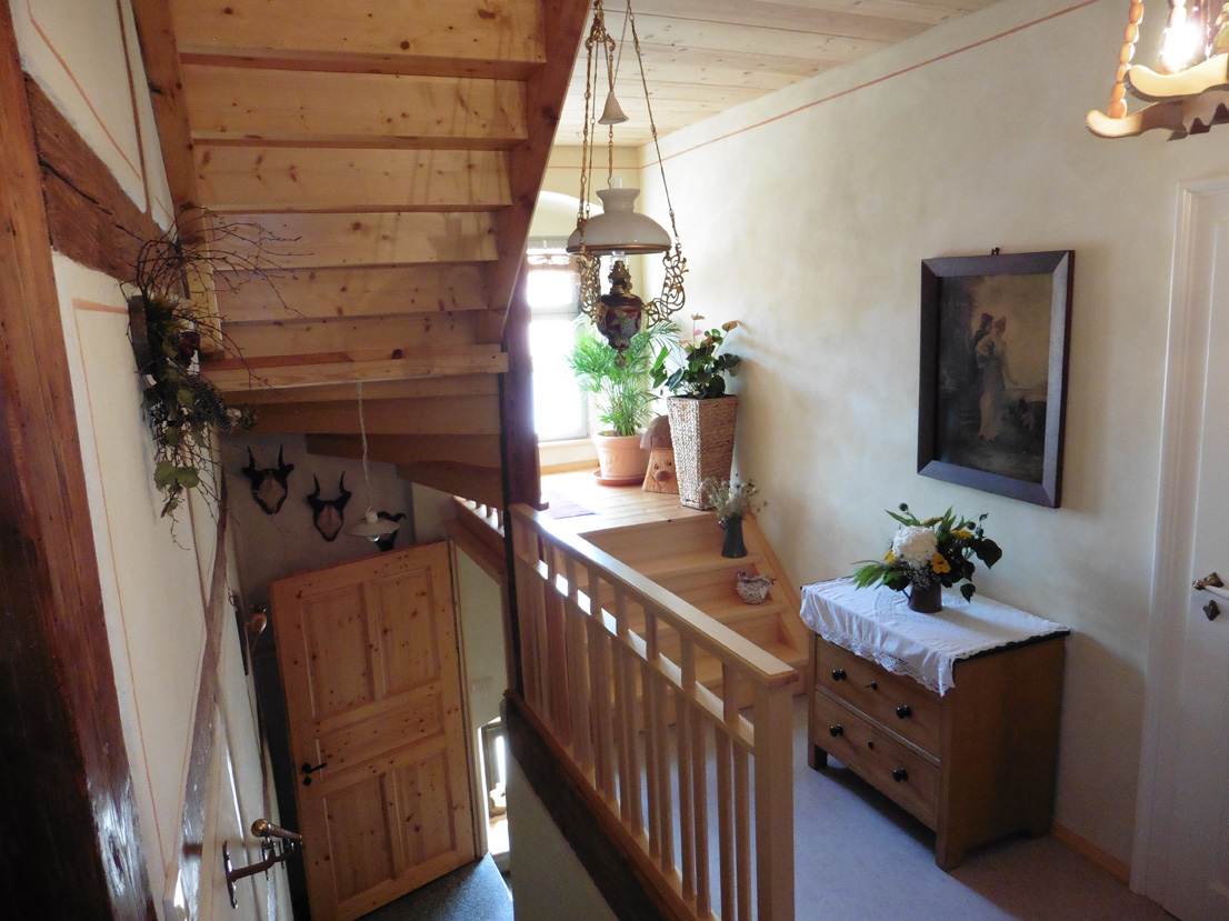 | Ausstattung: DZ 21 m², Aufbettung möglich, Dusche/WC, WLAN, Flat-TV (SAT), Zentralheizung, Frühstücksraum mit Kühlschrank, Kaffeemaschine, Wasserkocher, Geschirr Beschreibung: zentral gelegen, familienfreundlicher Bauernhof, Aufenthaltsraum, große Terrasse, Parkplatz im Hof, Fahrradgarage, Nichtraucher. Zum Frühstück servieren wir regionale Produkte. | ||